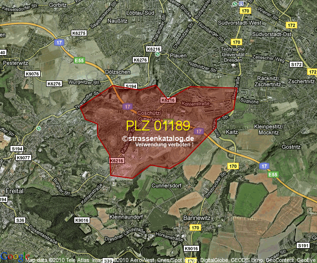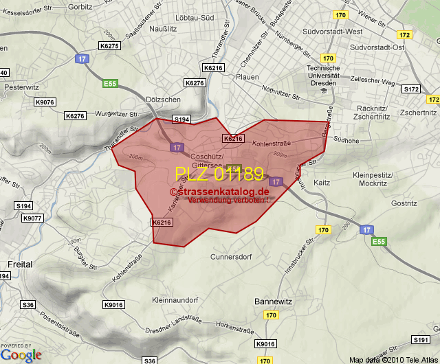 Straßenverzeichnis zur Postleitzahl 01189