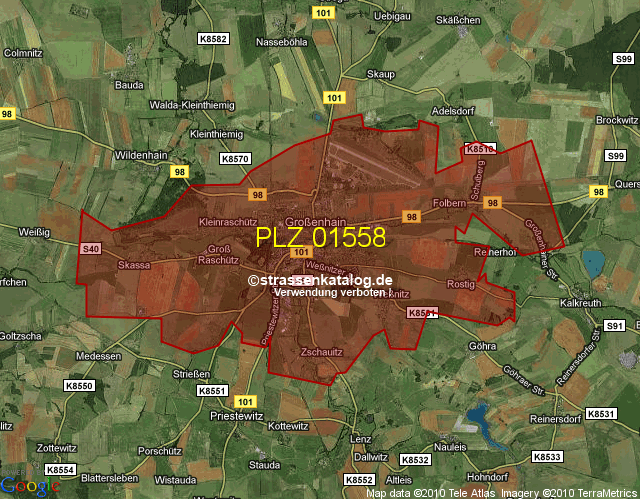 Straßenverzeichnis zur Postleitzahl 01558