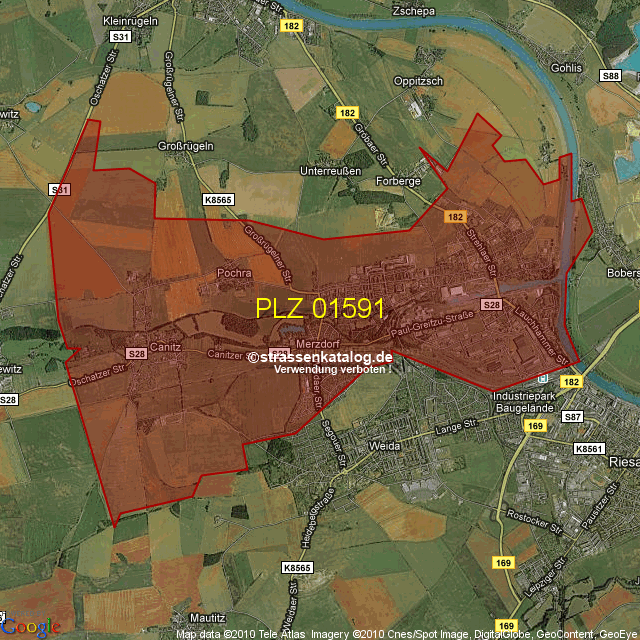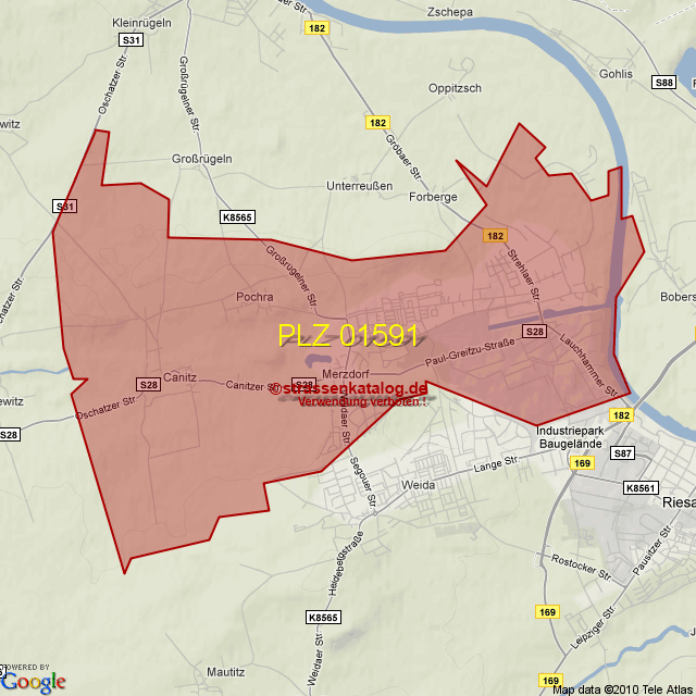 Straßenverzeichnis zur Postleitzahl 01591