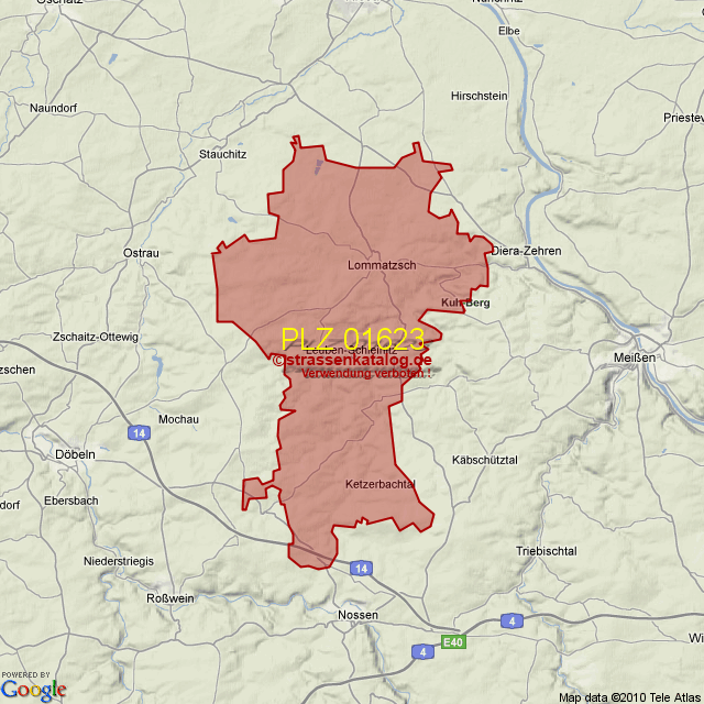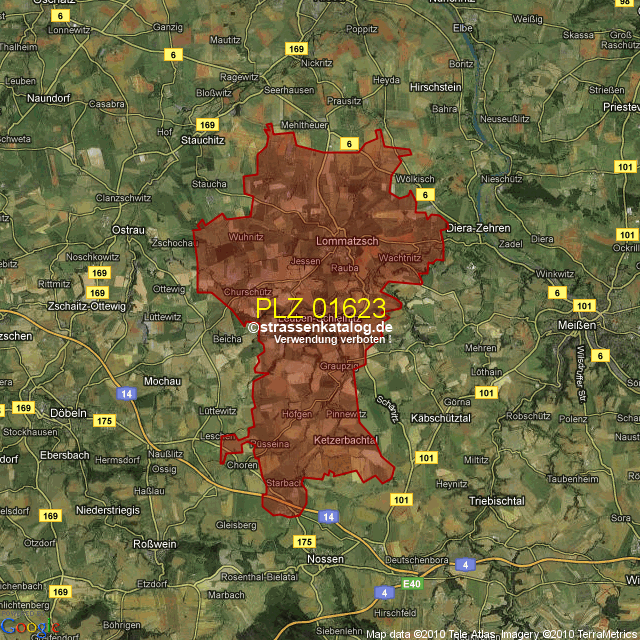 Ortsteile von Lommatzsch mit der PLZ 01623