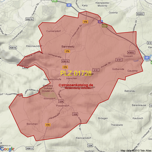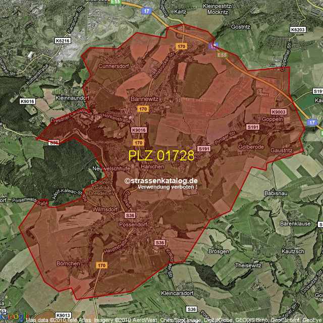 Ortsteile von Cunnersdorf mit der PLZ 01728