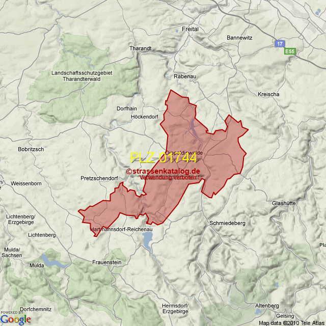 Ortsteile von Dippoldiswalde mit der PLZ 01744