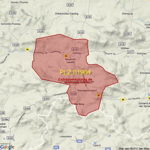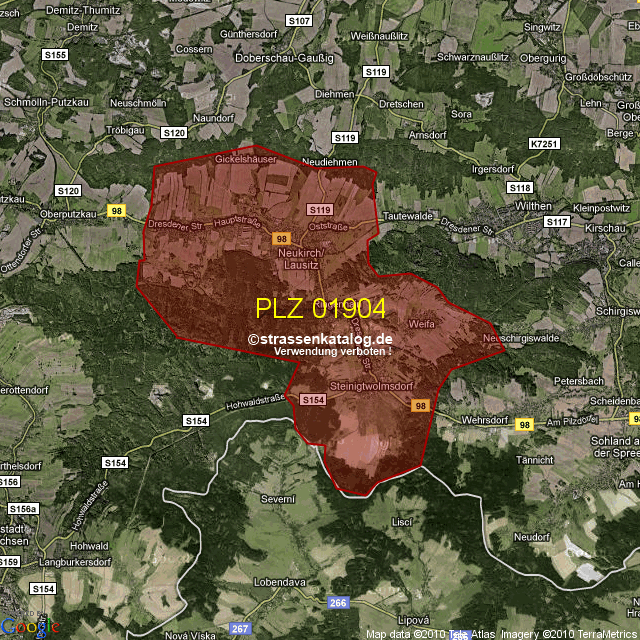 Ortsteile von Steinigtwolmsdorf mit der PLZ 01904