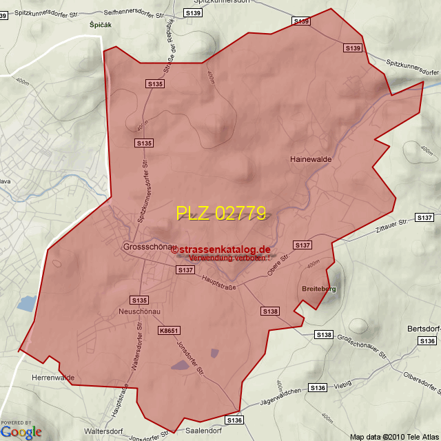 Straßenverzeichnis zur Postleitzahl 02779