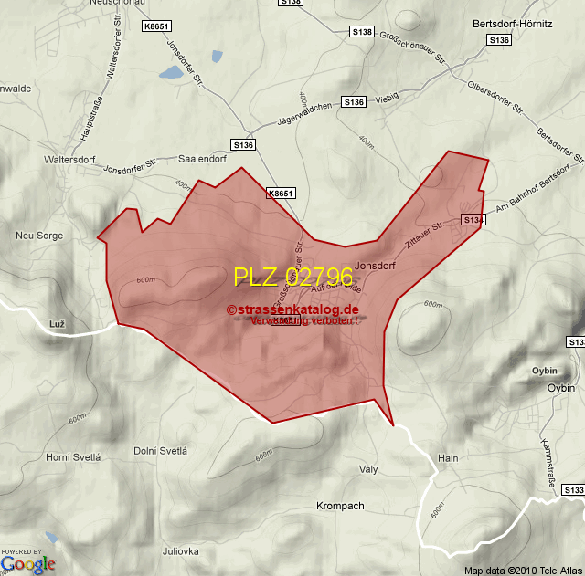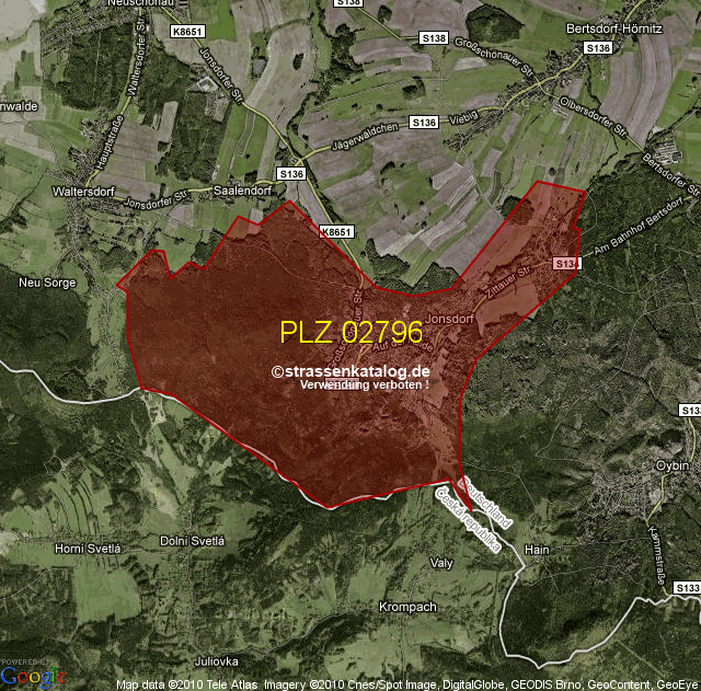 Straßenverzeichnis zur Postleitzahl 02796