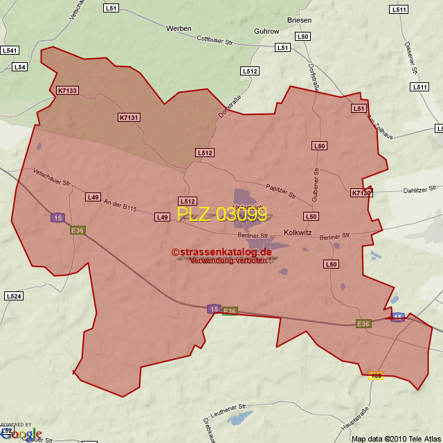Postleitzahlgebiet (PLZ) 03099