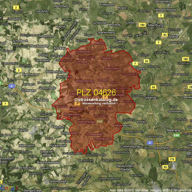 Ortsteile von Nöbdenitz mit der PLZ 04626