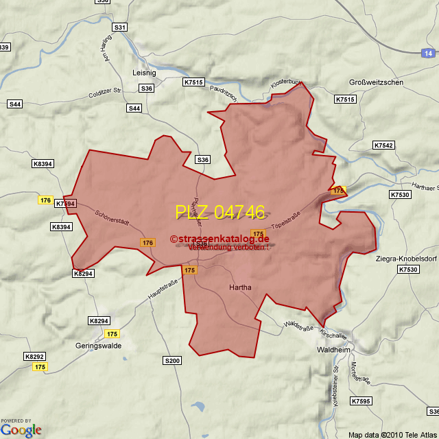 Straßenverzeichnis zur Postleitzahl 04746