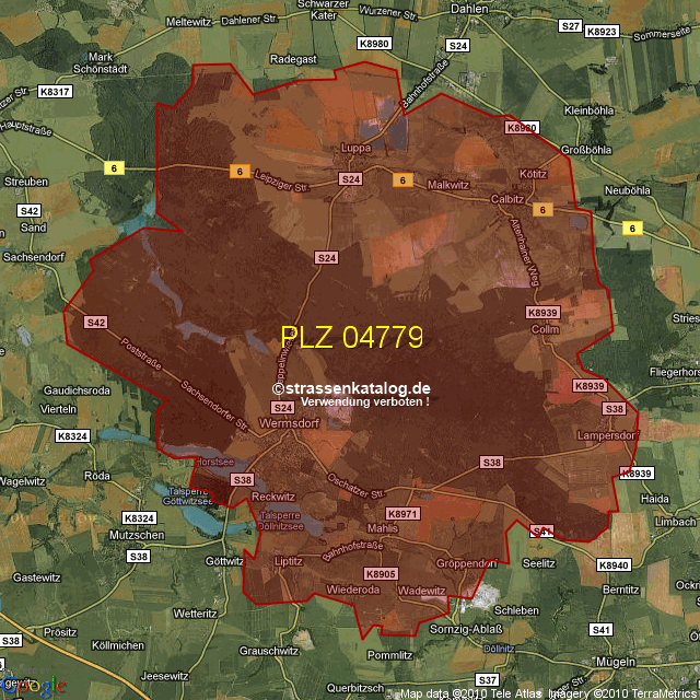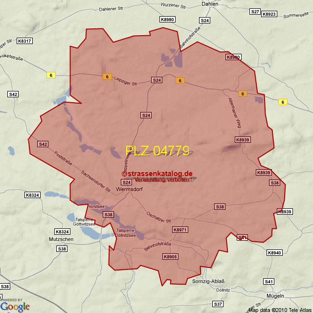 Straßenverzeichnis zur Postleitzahl 04779
