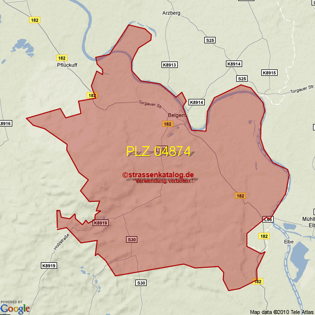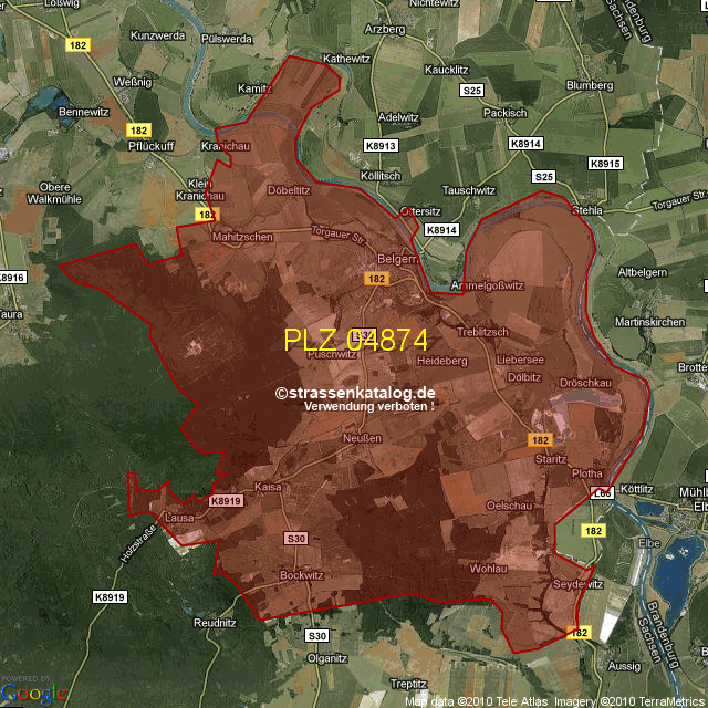 Straßenverzeichnis zur Postleitzahl 04874
