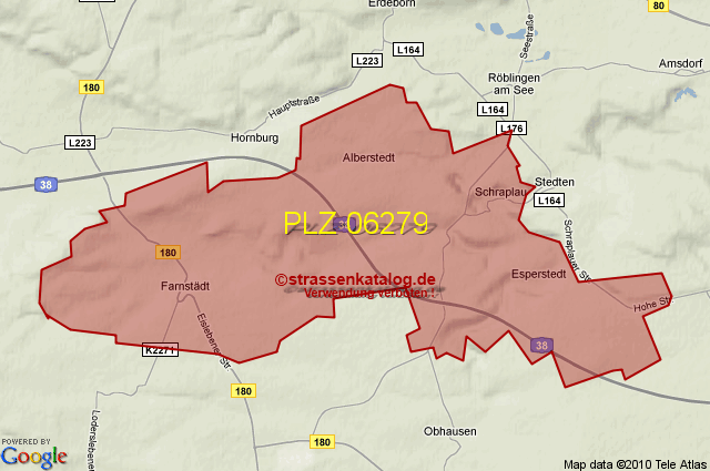 Straßenverzeichnis zur Postleitzahl 06279