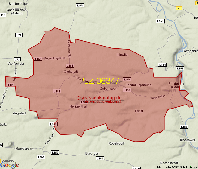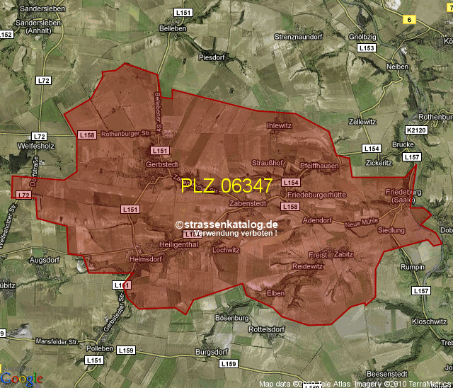 Postleitzahlgebiet (PLZ) 06347