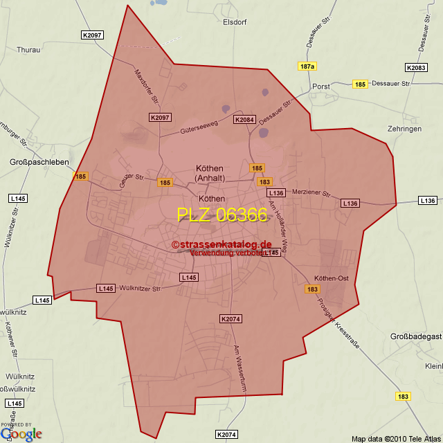 Postleitzahlgebiet (PLZ) 06366