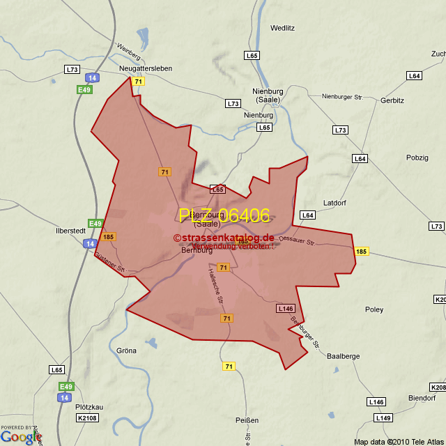 Straßenverzeichnis zur Postleitzahl 06406