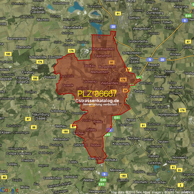 Ortsteile von Weißenfels mit der PLZ 06667