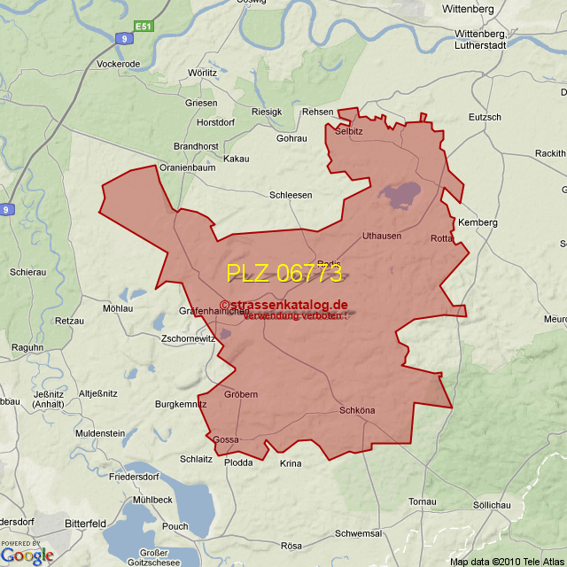 Ortsteile von Gräfenhainichen mit der PLZ 06773