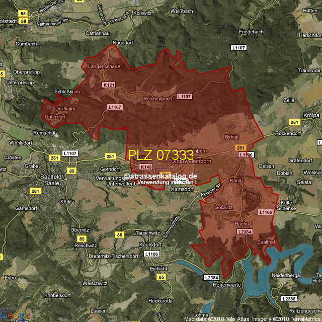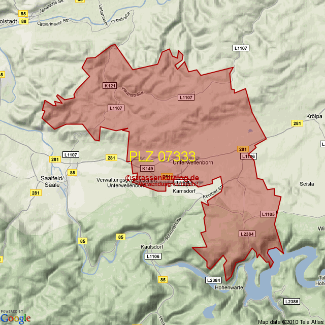 Ortsteile von Unterwellenborn mit der PLZ 07333