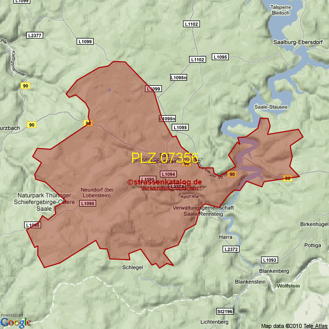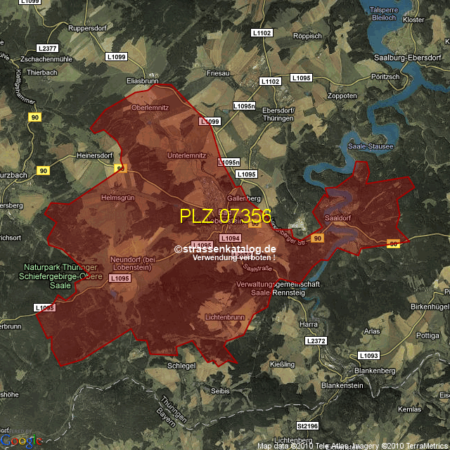 Postleitzahlgebiet (PLZ) 07356
