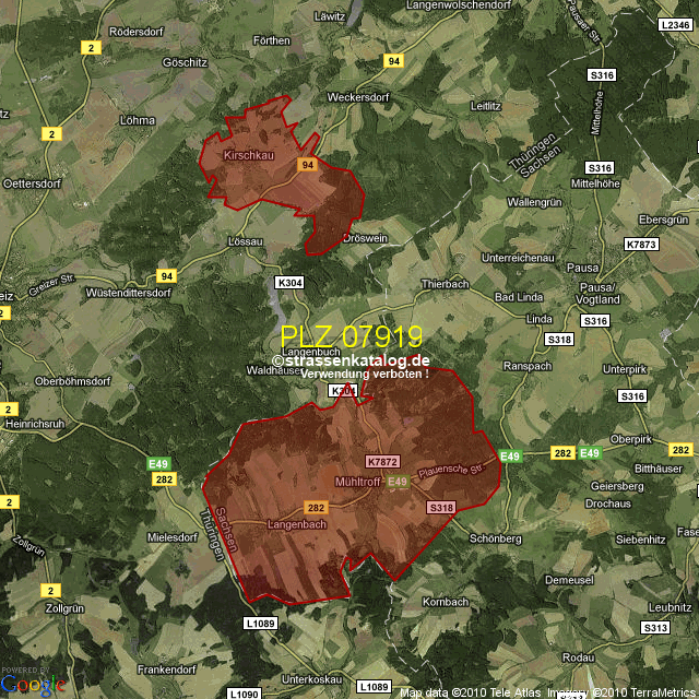 Postleitzahlgebiet (PLZ) 07919