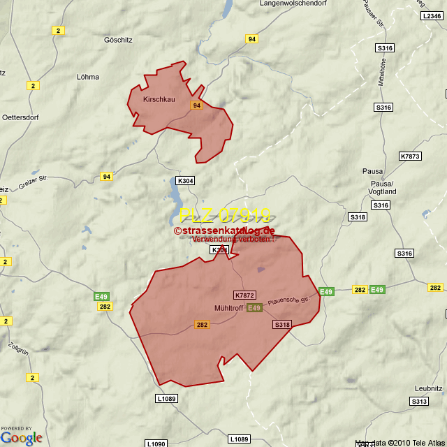 Straßenverzeichnis zur Postleitzahl 07919