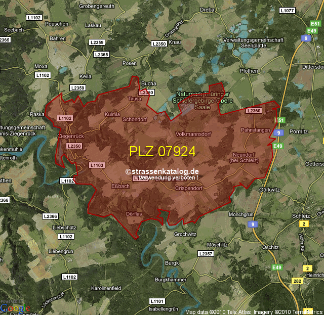 Postleitzahlgebiet (PLZ) 07924