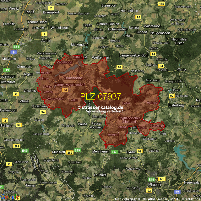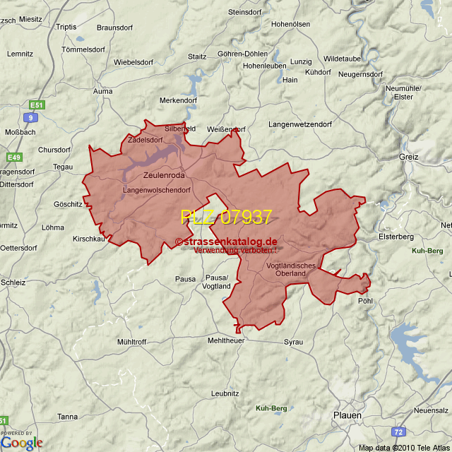 Ortsteile von Zeulenroda mit der PLZ 07937