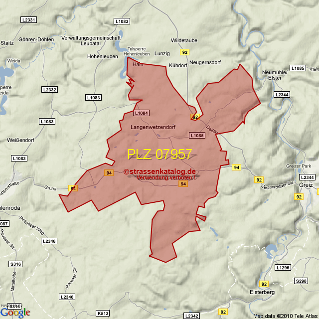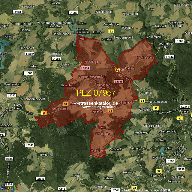 Ortsteile von Langenwetzendorf mit der PLZ 07957