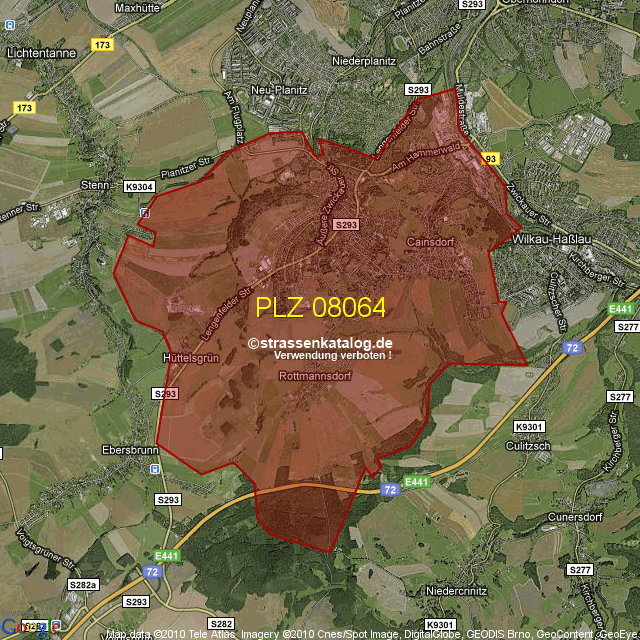 Straßenverzeichnis zur Postleitzahl 08064