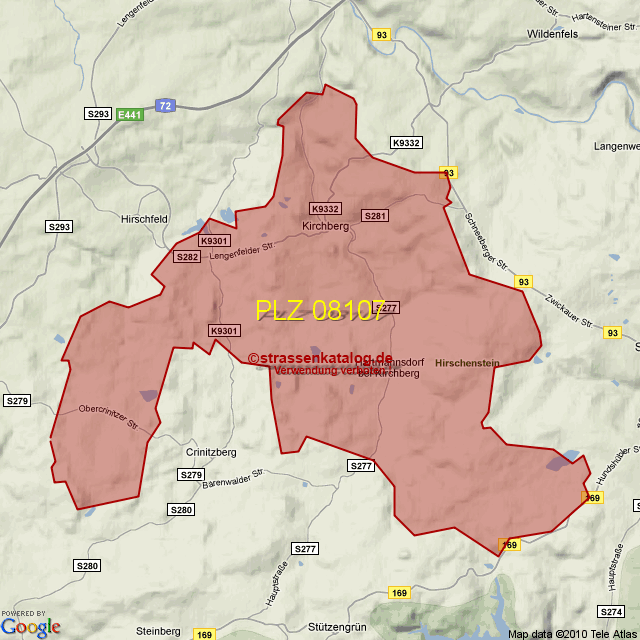 Ortsteile von Hartmannsdorf mit der PLZ 08107