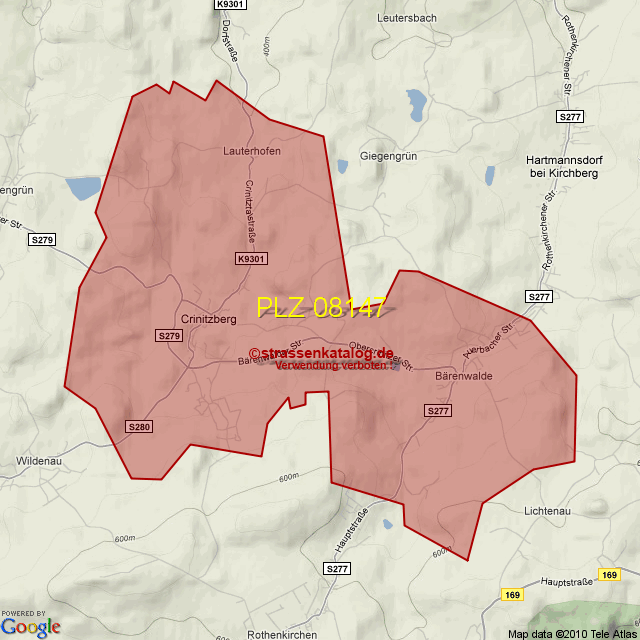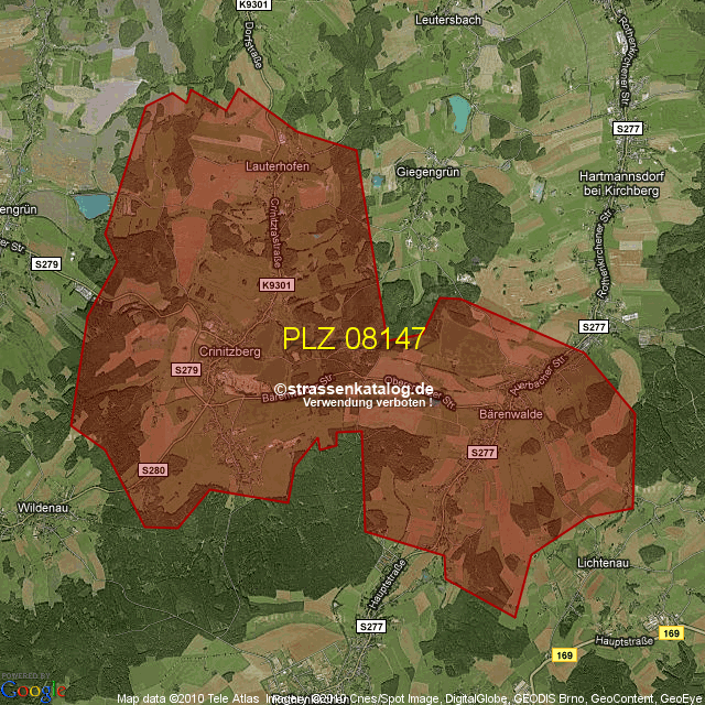 Straßenverzeichnis zur Postleitzahl 08147