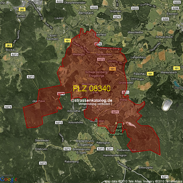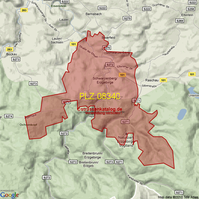 Ortsteile von Schwarzenberg mit der PLZ 08340