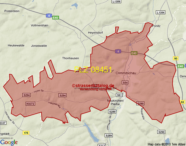Ortsteile von Crimmitschau mit der PLZ 08451