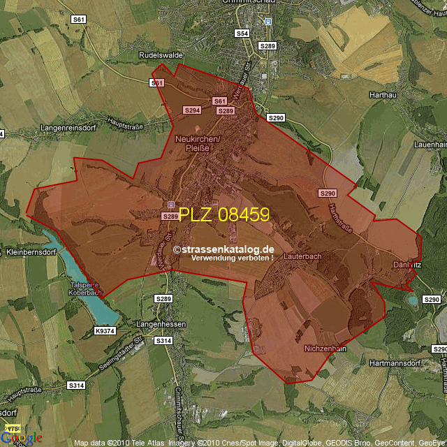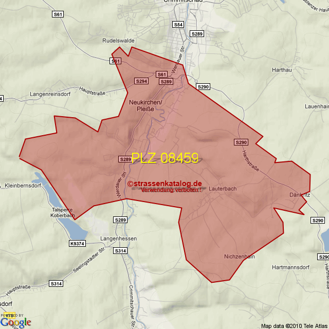 Straßenverzeichnis zur Postleitzahl 08459
