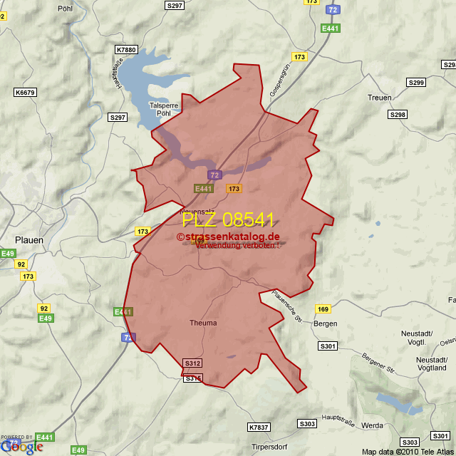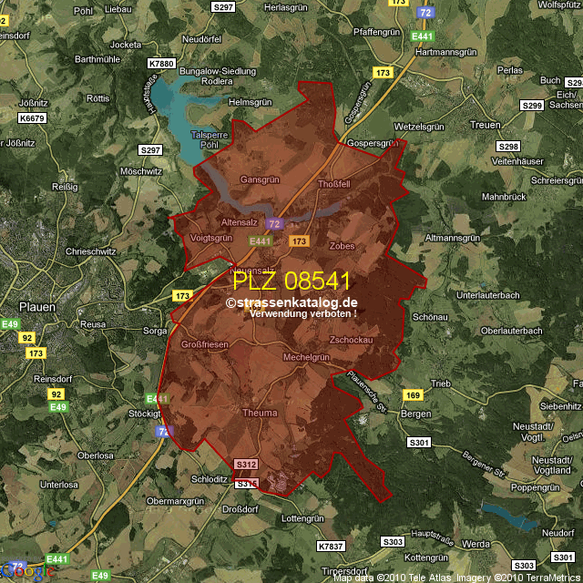 Straßenverzeichnis zur Postleitzahl 08541