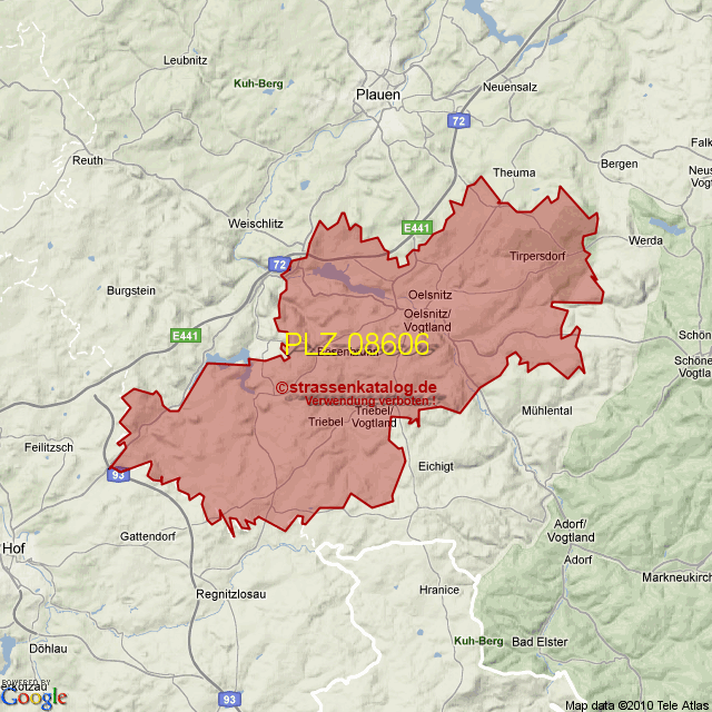 Ortsteile von Tirpersdorf mit der PLZ 08606