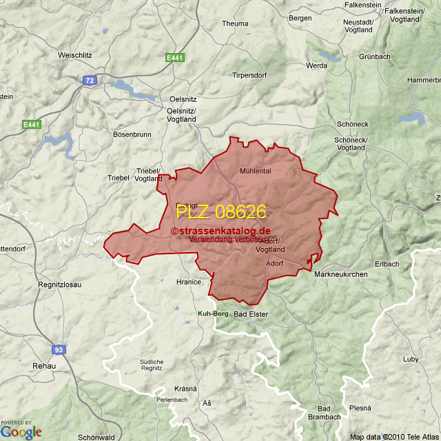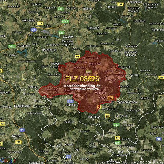 Straßenverzeichnis zur Postleitzahl 08626