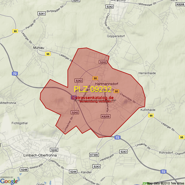 Straßenverzeichnis zur Postleitzahl 09232