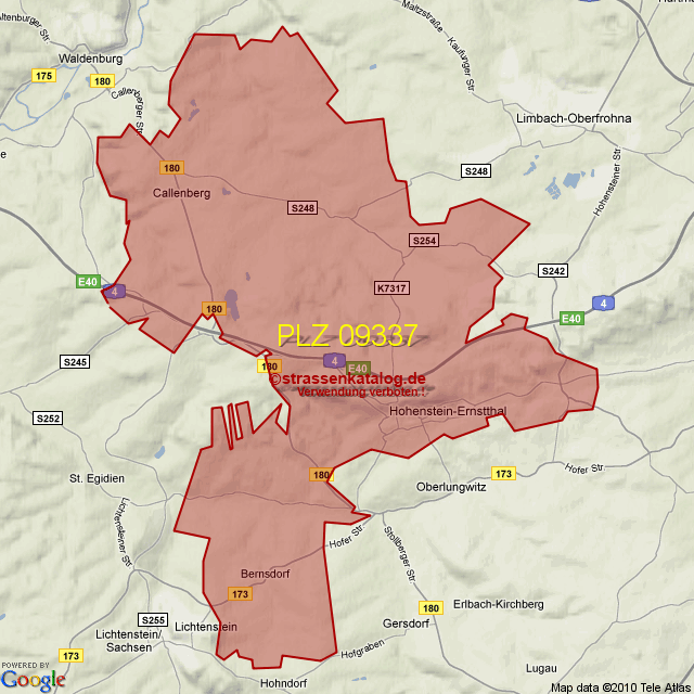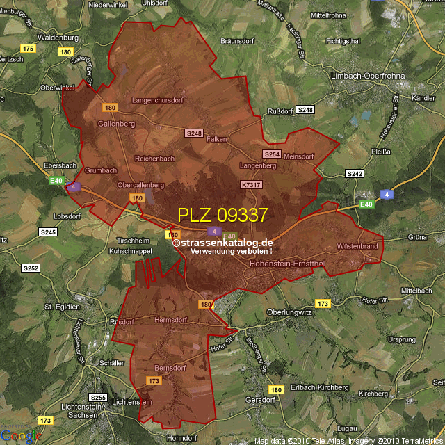 Ortsteile von Hohenstein-Ernstthal mit der PLZ 09337