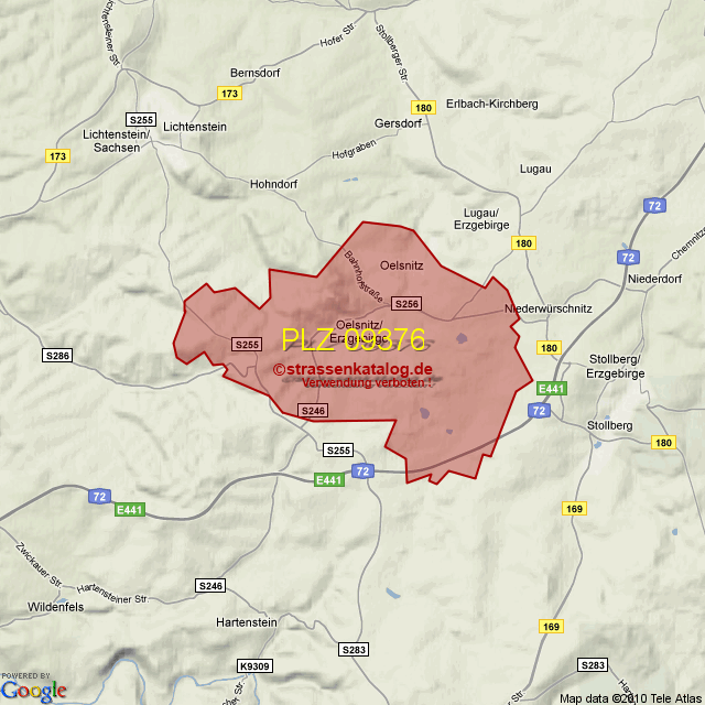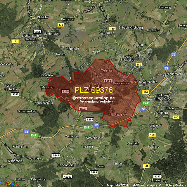 Ortsteile von Oelsnitz mit der PLZ 09376