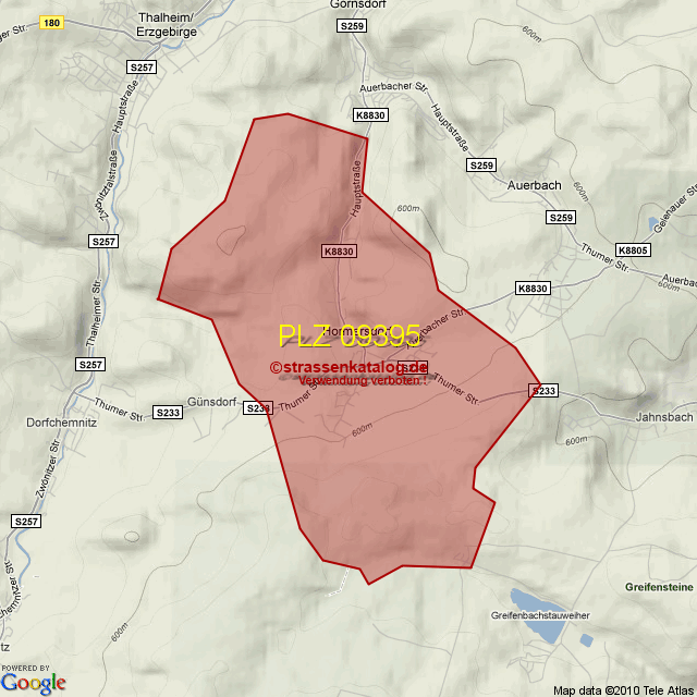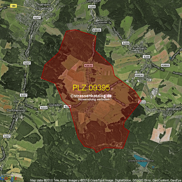Straßenverzeichnis zur Postleitzahl 09395