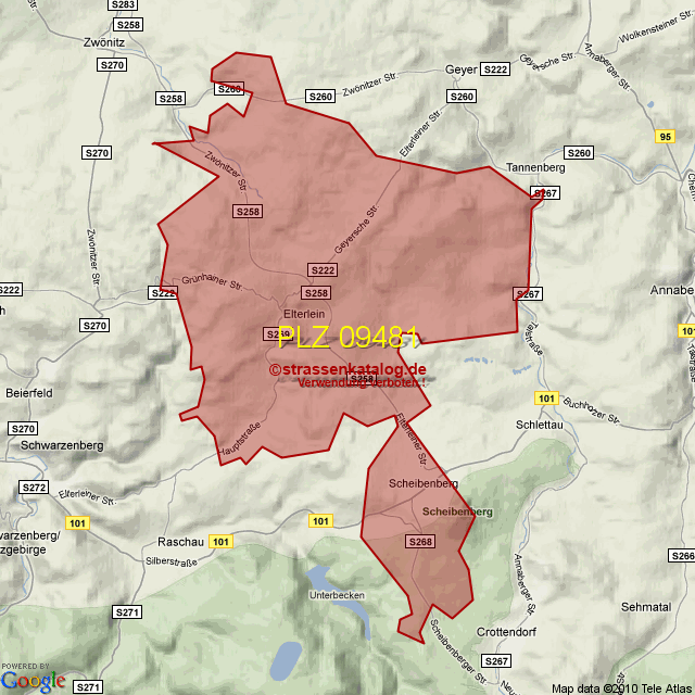 Ortsteile von Scheibenberg mit der PLZ 09481