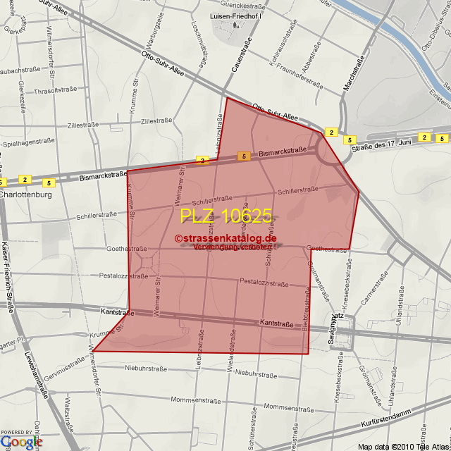 Straßenverzeichnis zur Postleitzahl 10625