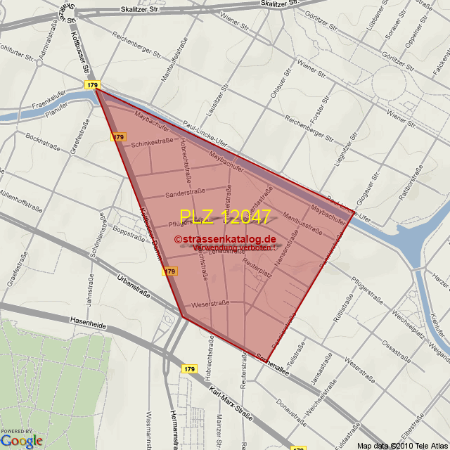 Straßenverzeichnis zur Postleitzahl 12047