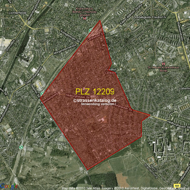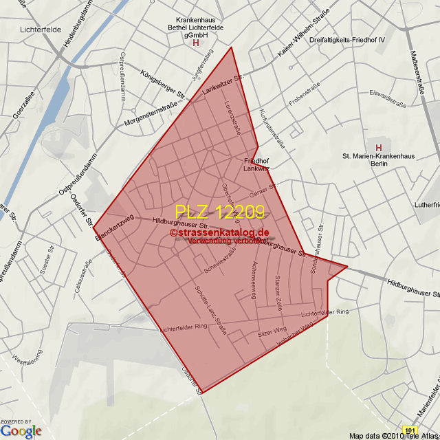 Straßenverzeichnis zur Postleitzahl 12209