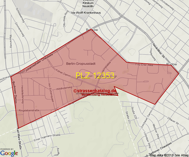 Straßenverzeichnis zur Postleitzahl 12353