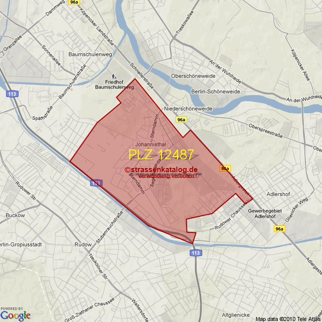 Straßenverzeichnis zur Postleitzahl 12487