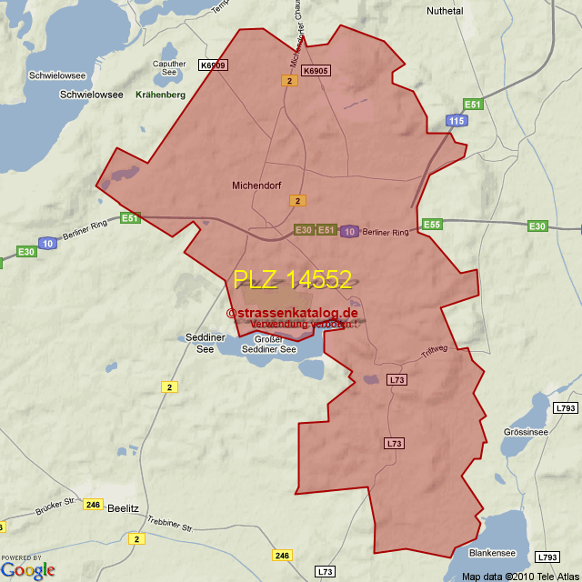 Straßenverzeichnis zur Postleitzahl 14552