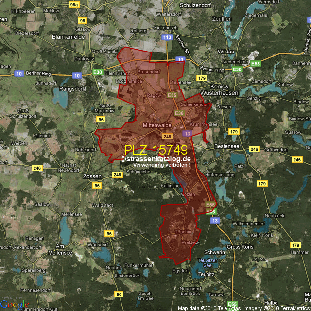 Ortsteile von Mittenwalde mit der PLZ 15749