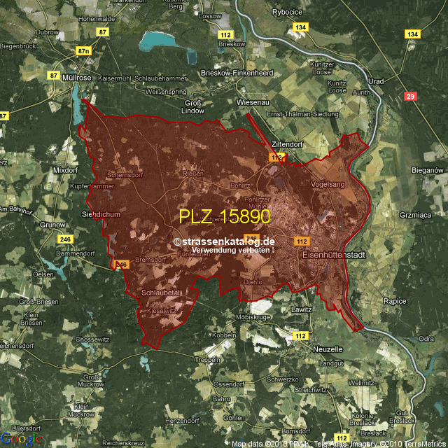Ortsteile von Eisenhüttenstadt mit der PLZ 15890