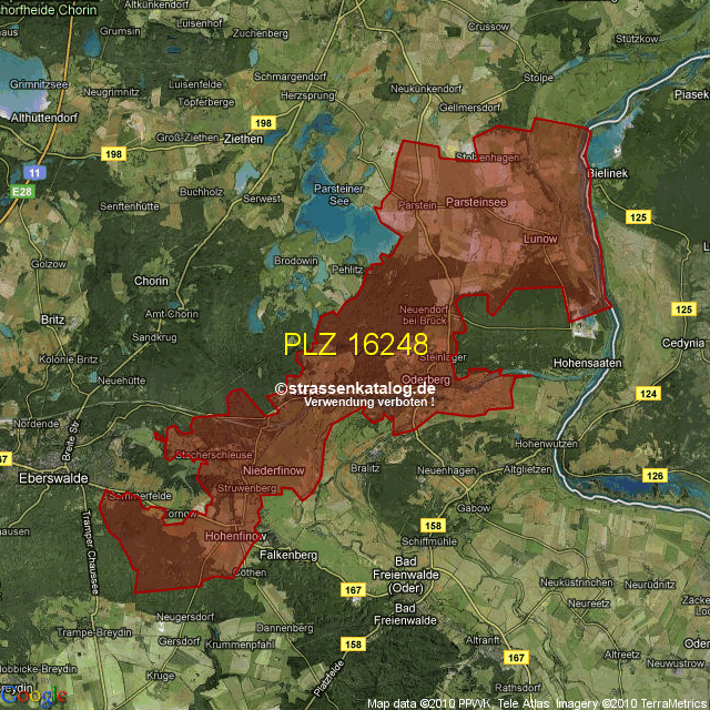 Ortsteile von Parsteinsee mit der PLZ 16248